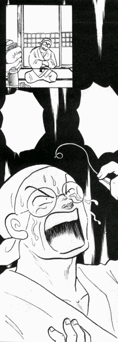 After scouring Furinkan, Happosai finds the Niku-men once more and demands he tell them how to use the Dragon's Whisker. Despite initially refusing the Niku-men soon give in when Happosai projects his Battle Aura and threatens to kills them.
