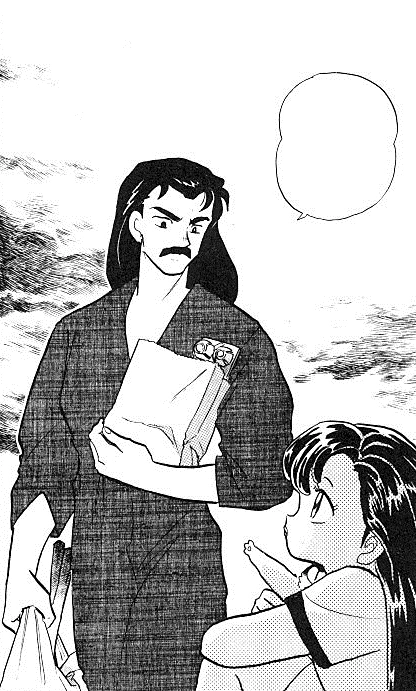 She's unsure of what to do when Soun finds her and mistakes her for Akane's friend. She mentions that she's looking for the Tendo house he and brings her with him. When he offers her a lollipop and dinner, Hinako becomes enamored with him. Akane once again reminds her that she should be house hunting, but Hinako has more important things to do, such as playing with Genma's panda form. Nobody except Ranma and Akane are aware of Hinako's child-like state, and they assume she's running late. Hinako then uses a 50 yen on Ranma to temporarily gain her adult form just as Soun arrives. She introduces herself as Ranma's teacher and they begin talking. Ranma and Akane begin to realize that Hinako seems to constantly switch to her adult form whenever Soun is around. He goes out to a town meeting and Kasumi prepares dinner. Everyone else except Soun is now aware of Miss Hinako's ability. She stays over for dinner and Kasumi remarks that she really enjoys anime when Akane reminds her that she was suppose to talk to Ranma's father. She is then told that the panda she's been playing with the whole time is Ranma's father, much to her excitement.