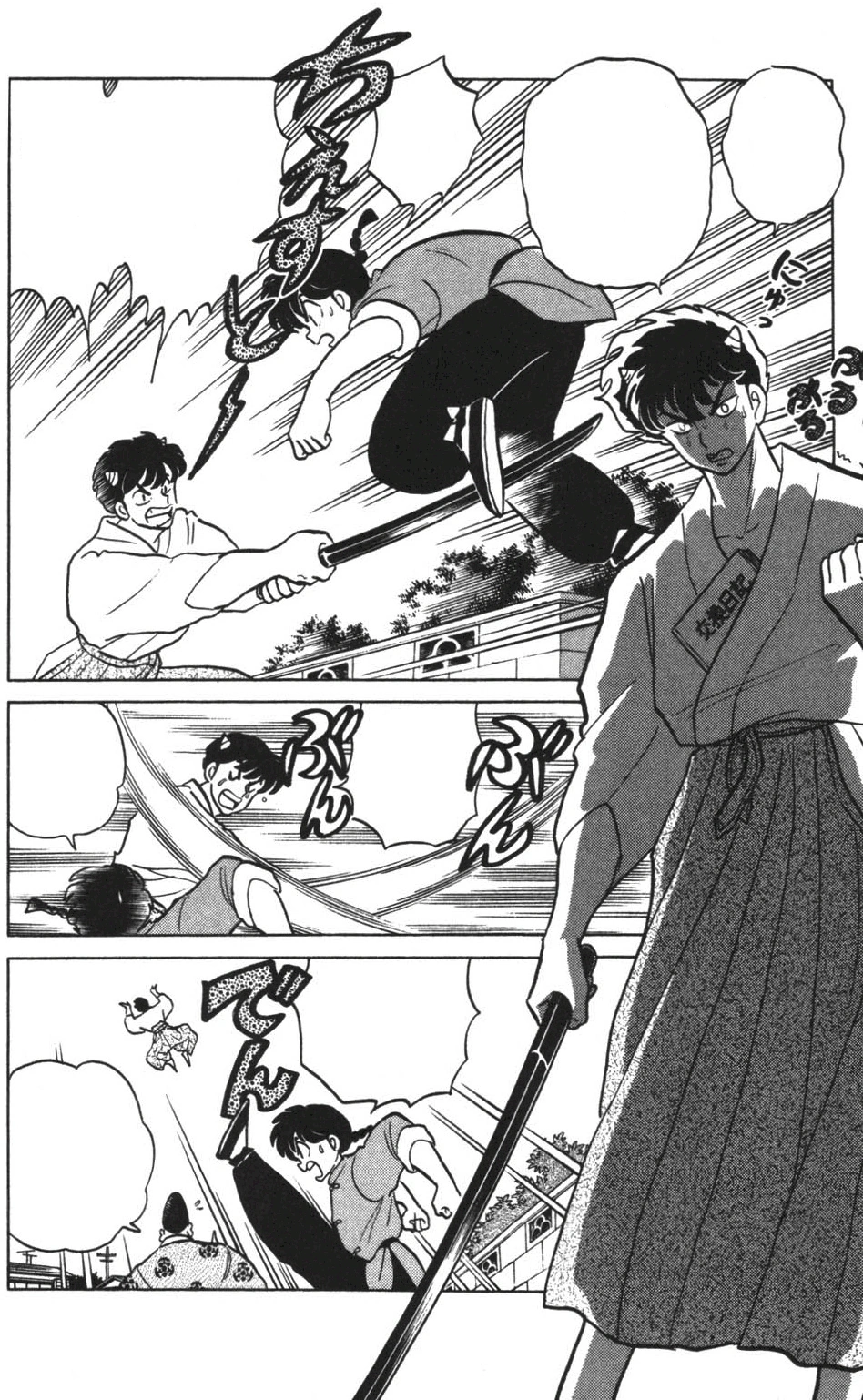 - The striped outfits which Ranma wears on this chapter's title page and that worn by the Oni are likely references to the outfits worn by Lum and Ten from Rumiko Takahashi's previous manga series, Urusei Yatsura.