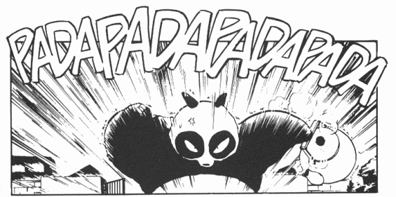 A Panda then appears, carrying a Tetsubin. Genma runs up to Ranma, grabs him, and pushes Kuno to the floor with ease. Akane can't see clearly through the rain but believes the Panda to be Mr. Saotome, she then watches the Panda carry Ranma off into the school. Meanwhile, some students comment on how easily Kuno was knocked out by the Panda.
