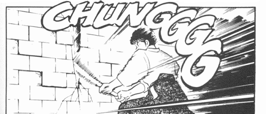 Kuno refuses to listen and begins to charge at Ranma, however, Ranma is able to dodge causing Kuno to slice into the brick wall that was behind Ranma. Kuno turns around to see Ranma on the tree that was nearby. Kuno shouts blast and swipes at the tree and cuts it in half, but Ranma is once again able to dodge. Ranma jumps down and lands on the tree half that fell on the floor. Ranma then tells Kuno to hold on and then runs towards Kuno and says to Kuno to let him make it perfectly clear. Meanwhile, Akane is astonished by the speed of which Ranma got to Kuno.