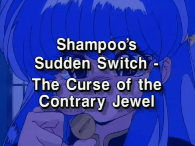 Shampoo's Sudden Switch - The Curse of the Contrary Jewel (シャンプー豹変! 反転宝珠の禍, Shampoo Hyōhen! Hanten Hōju no Wazawai?), also listed by Viz Media as Desperately Seeking Shampoo, is the first Ranma ½ OVA. It's an adaption of Reversal Jewel Arc.